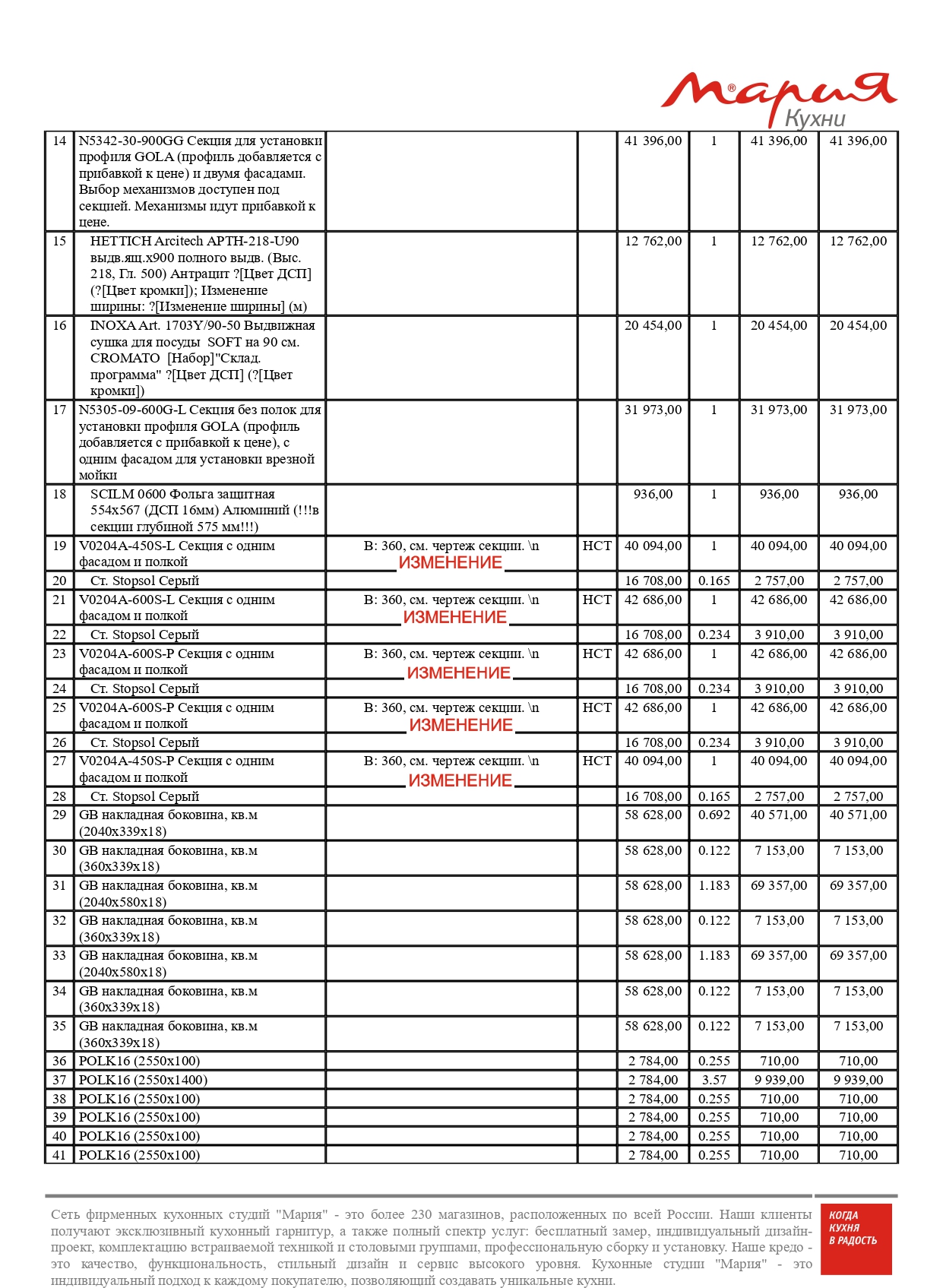 - секции, фасады, комплектующие – 1 256 637 р.