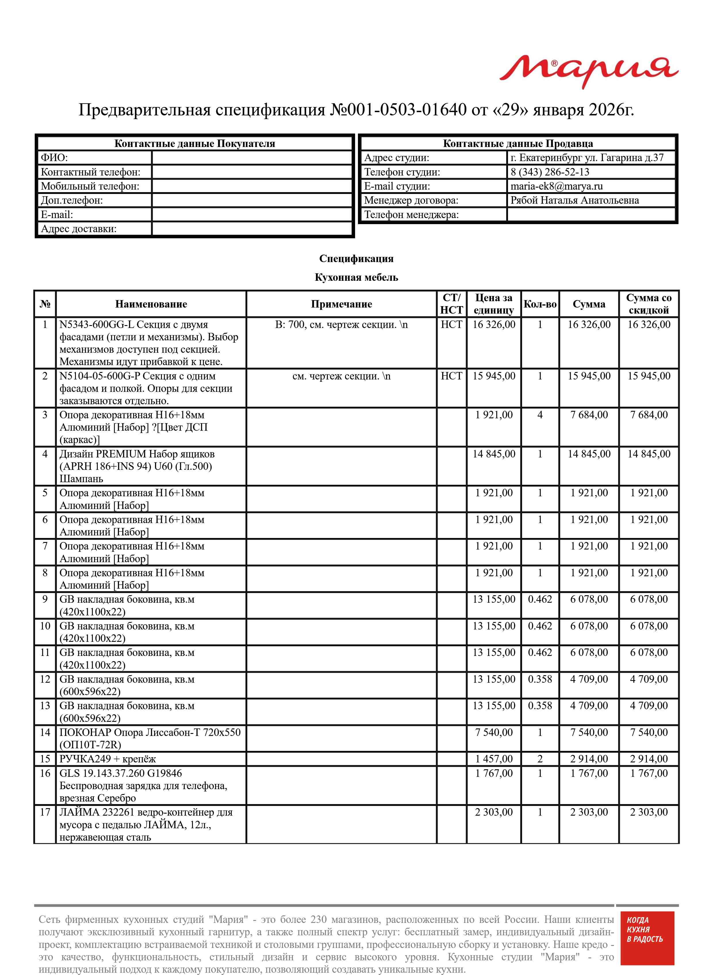 Стоимость данной кухни складывается из: