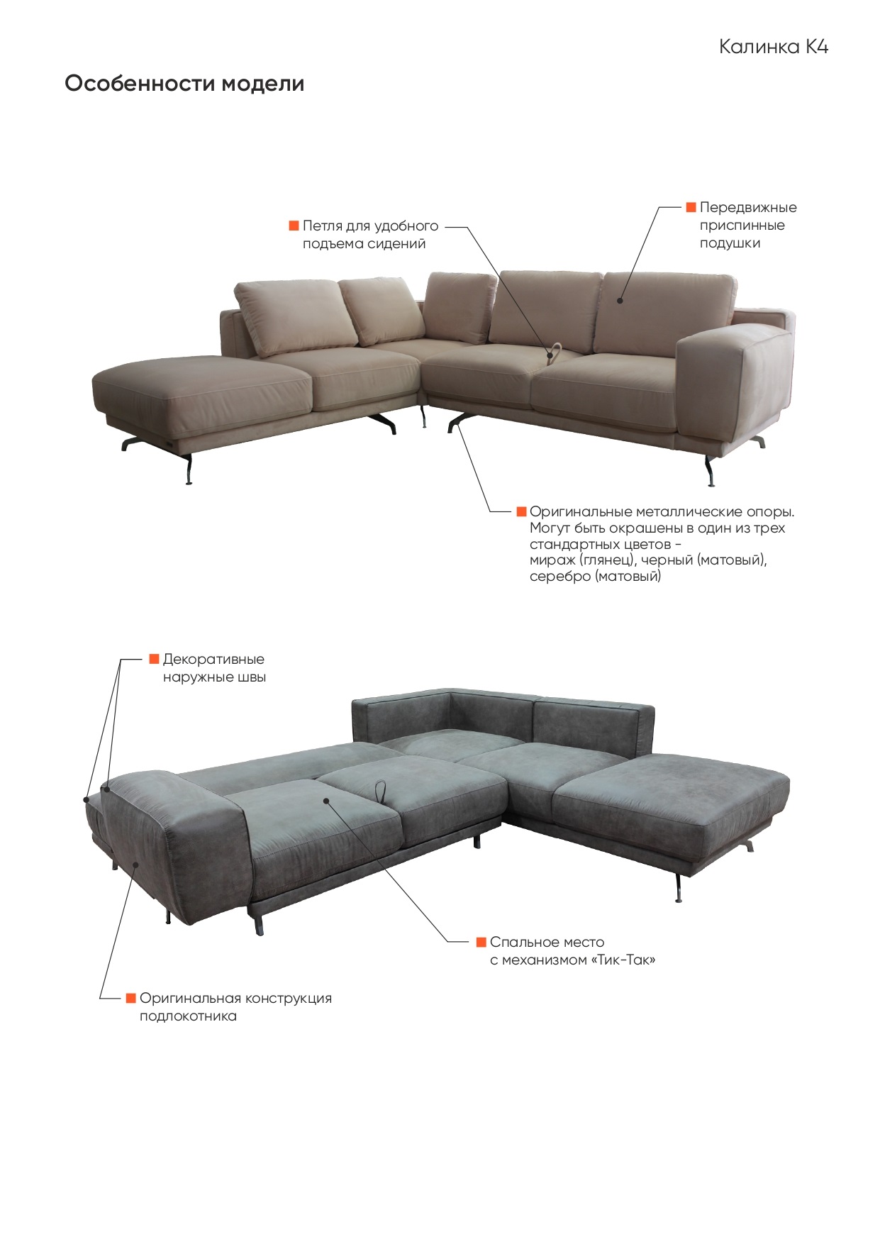 - Диван-кровать угловой Калинка 4: Механизм Тик-Так. Ткань Step Тextille Data