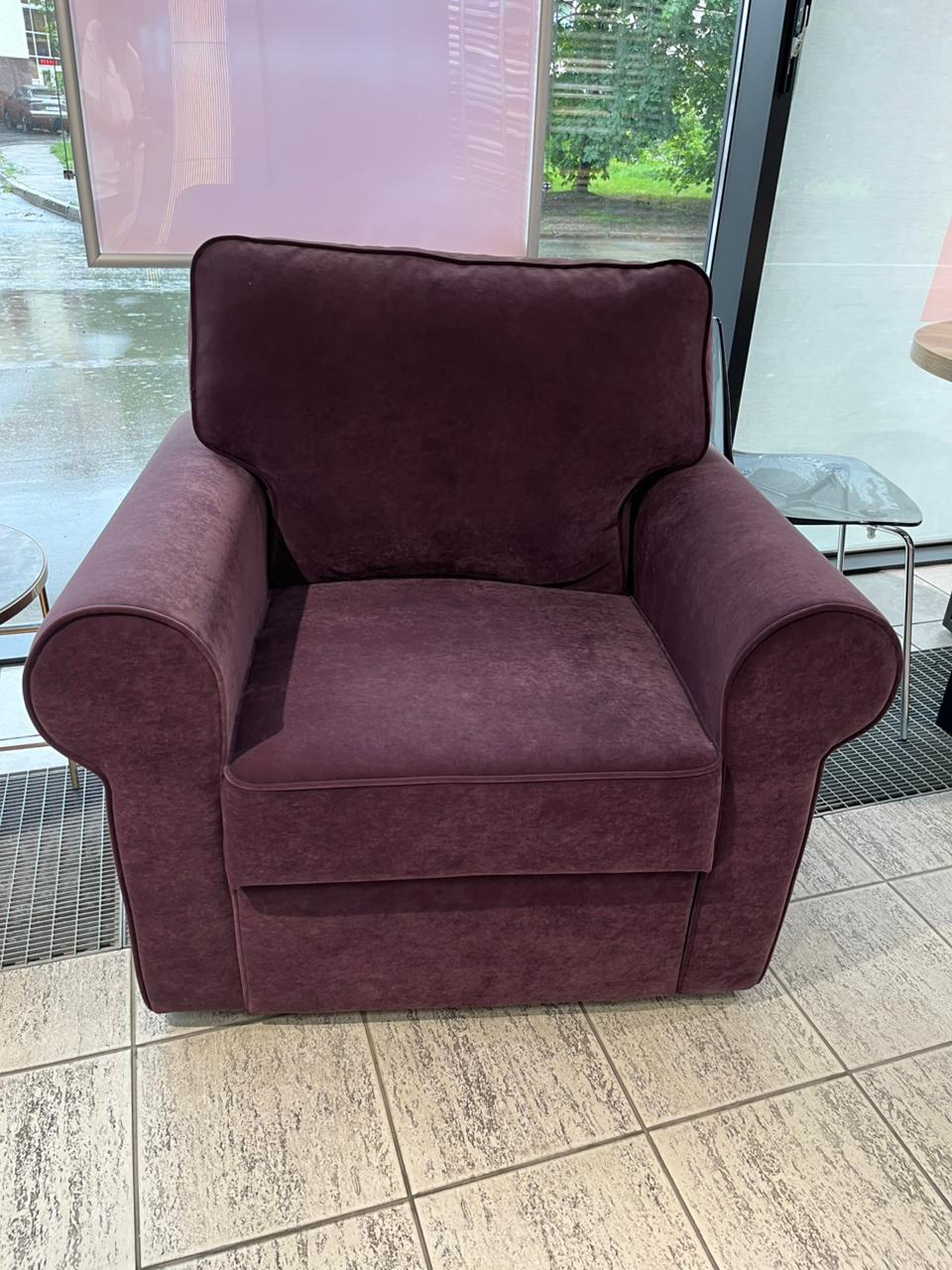 Внешний вид, описание дефектов: На задней части и на верху подушек кресел выгорела обивка на солнце (мебель стояла у окна).