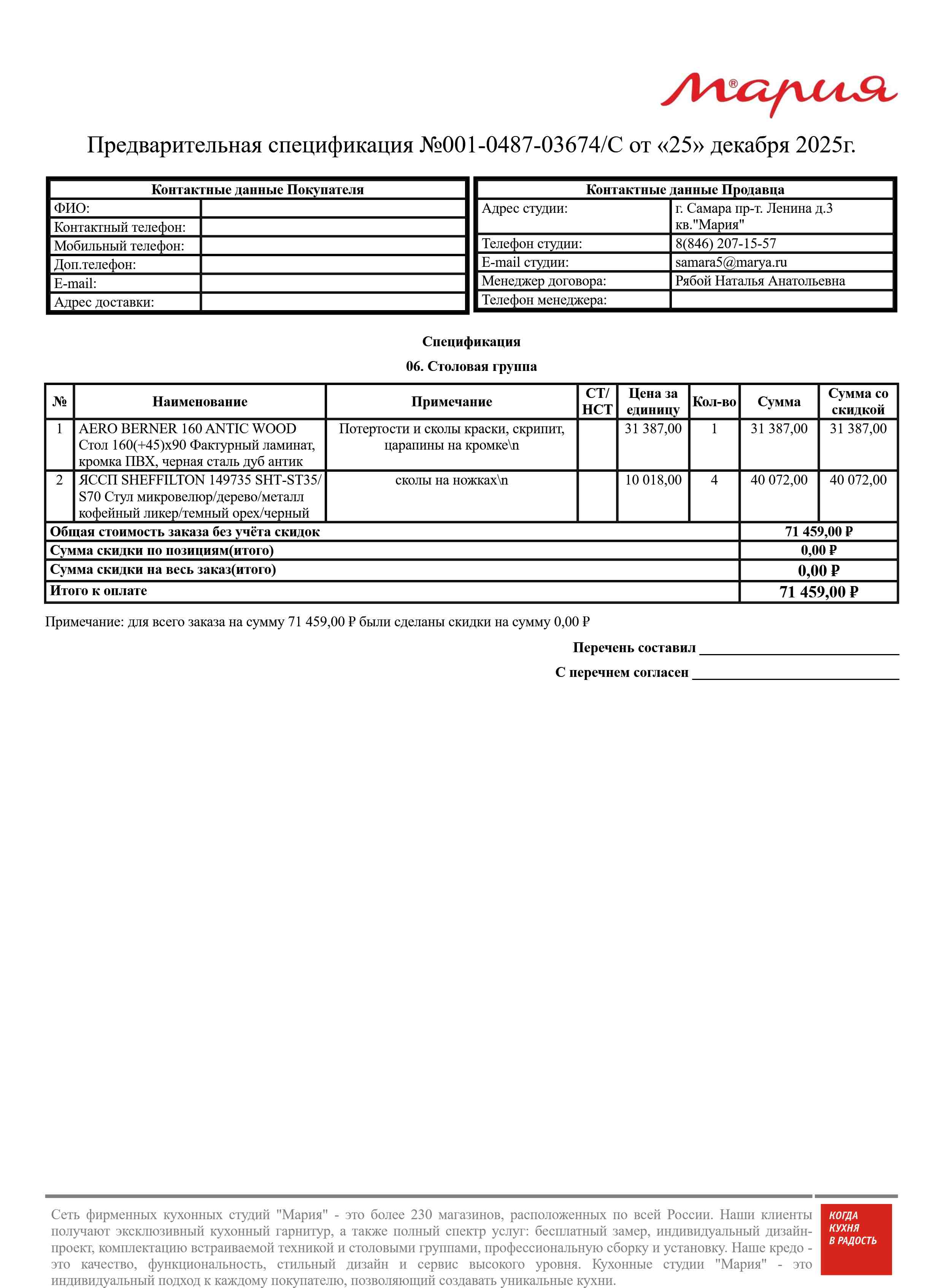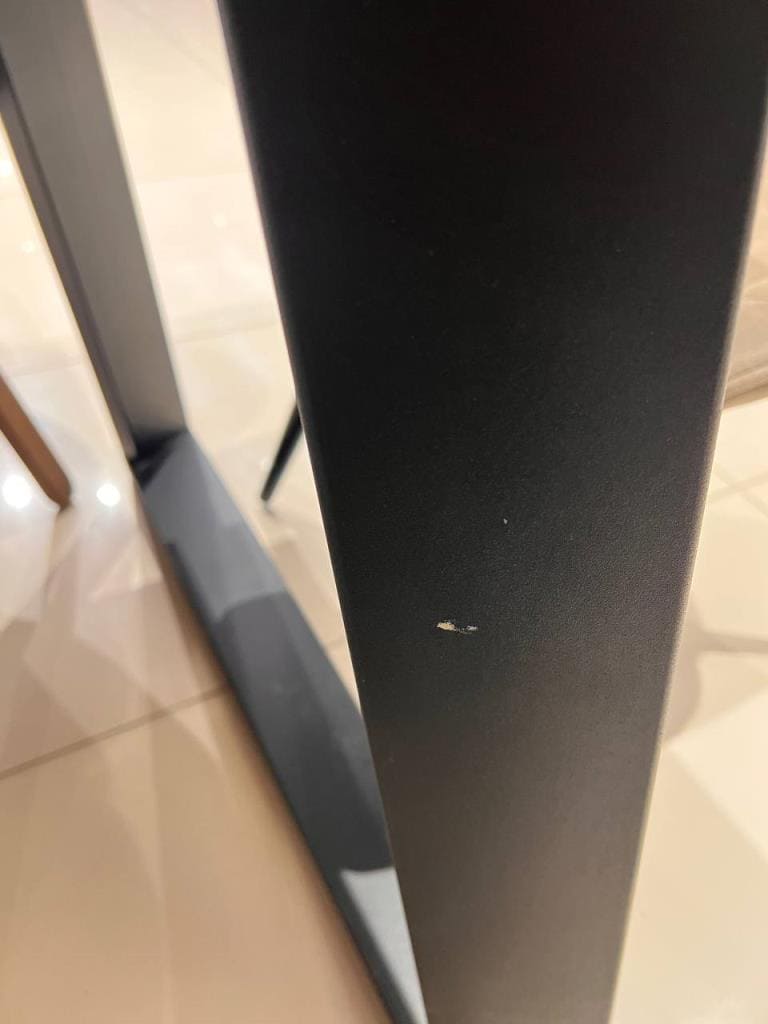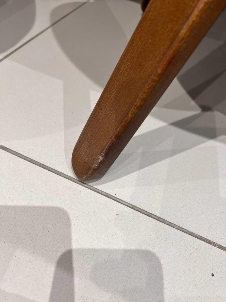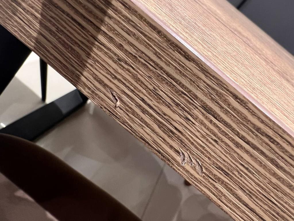 Внешний вид, описание дефектов: На столе потертости и сколы краски, скрипит, царапины на кромке. На стульях сколы на ножках.
