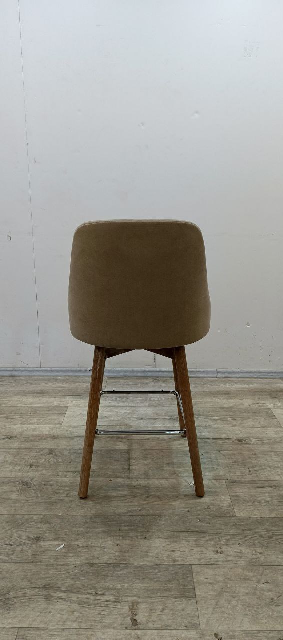 Полубарный стул Jimmy (Джимми) с поворотным механизмом имеет удобную высокую спинку, ножки из дерева с металлической подставкой для ног. Обивка нейтрального бежевого оттенка из велюра. Такой барный стул подходит в большинство современных интерьеров, особенно в скандинавский стиль и софт-минимализм.