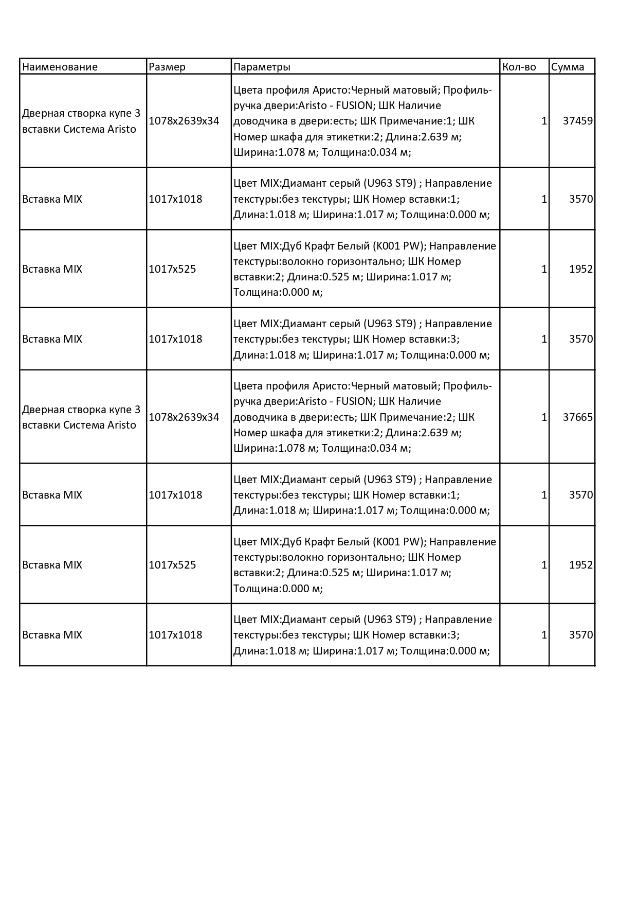 Размер одной створки: (Ш/В/Г) 1078x2639x34