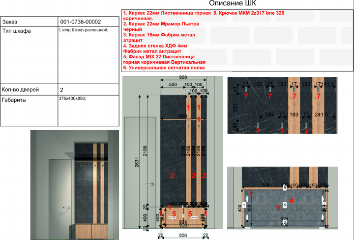Подробная спецификация шкафа-купе - в характеристиках товара.