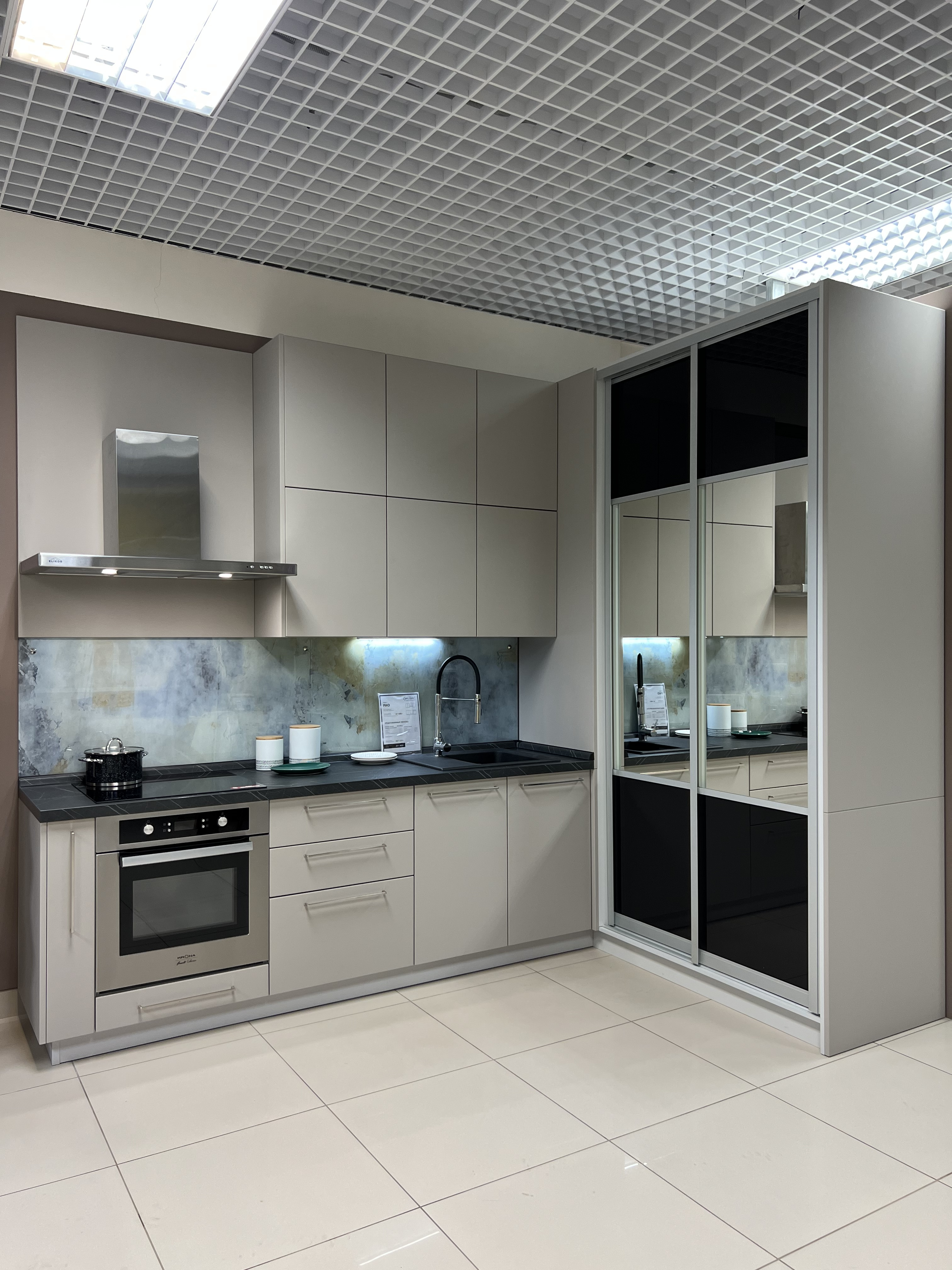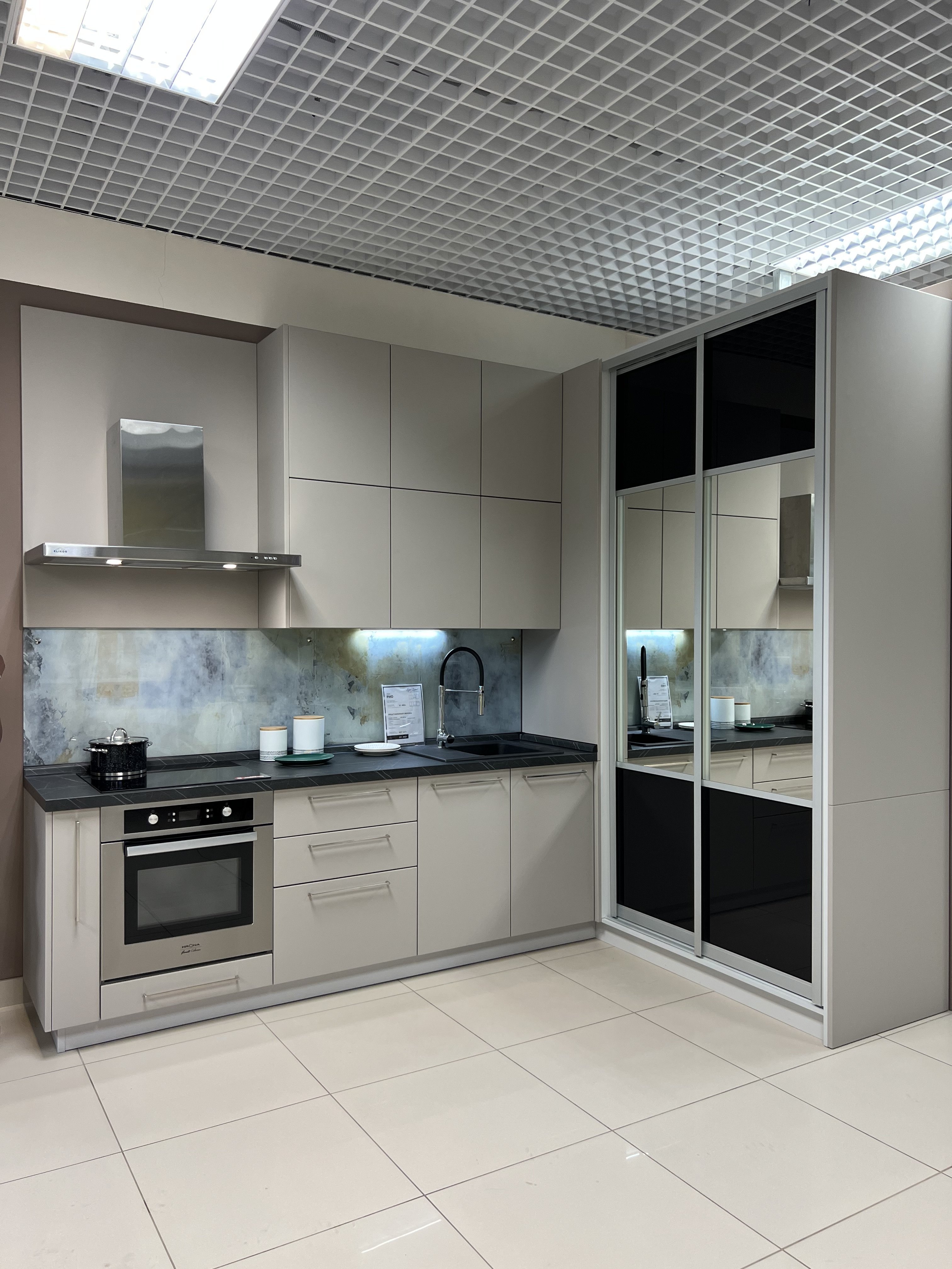 МДФ 19 мм. Покрытие: лицевая сторона — термопластик, обратная — белый ламинат. Термопластик обладает рядом преимуществ: большой выбор цветов и текстур, долговечность и прочность к механическим повреждениям, экологичность. Фасады изготавливаются путем облицовывания пластиком основы из МДФ методом вакуумного прессования.