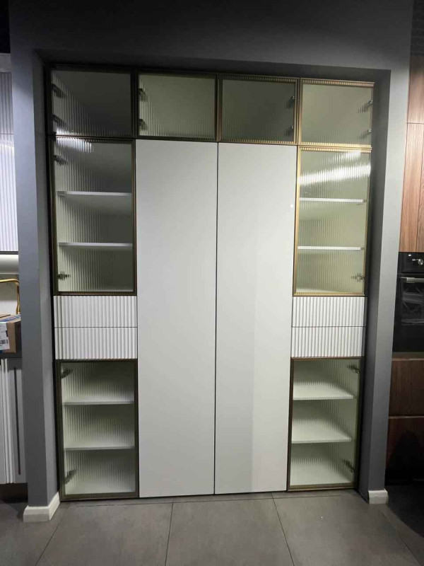 Allure это новое прочтение привычных прямых форм фасадов, дополненное классическими элементами: уникальными декоративными колонами, карнизами и фигурными опорами. Allure это еще и единая концепция цвета в матовом золоте, представленная в витринах, ручках профильных системах и резных элементах.
