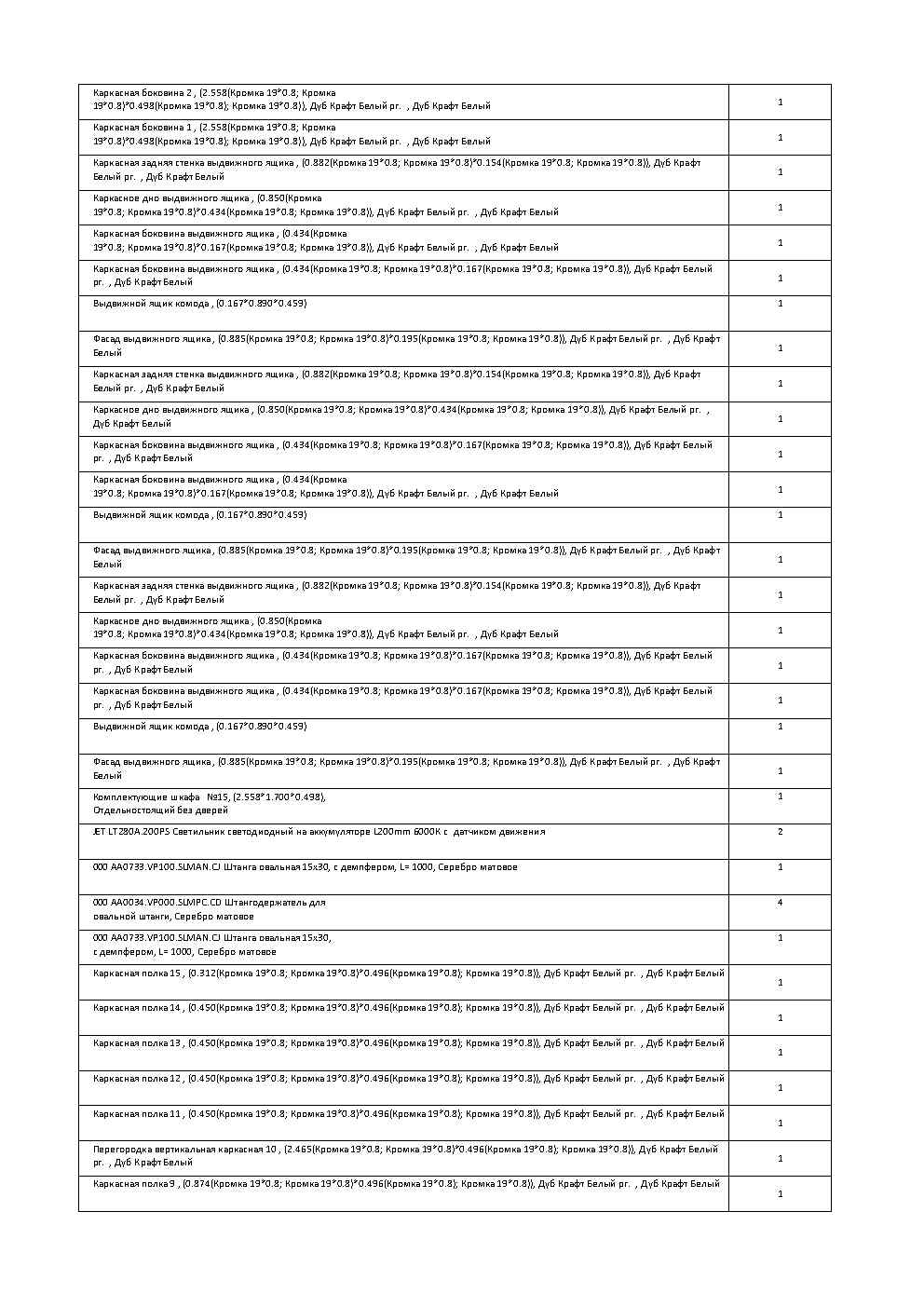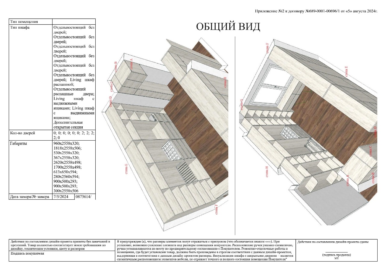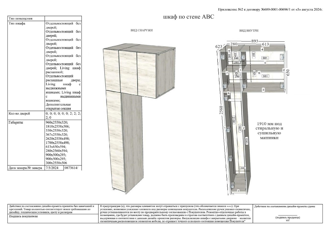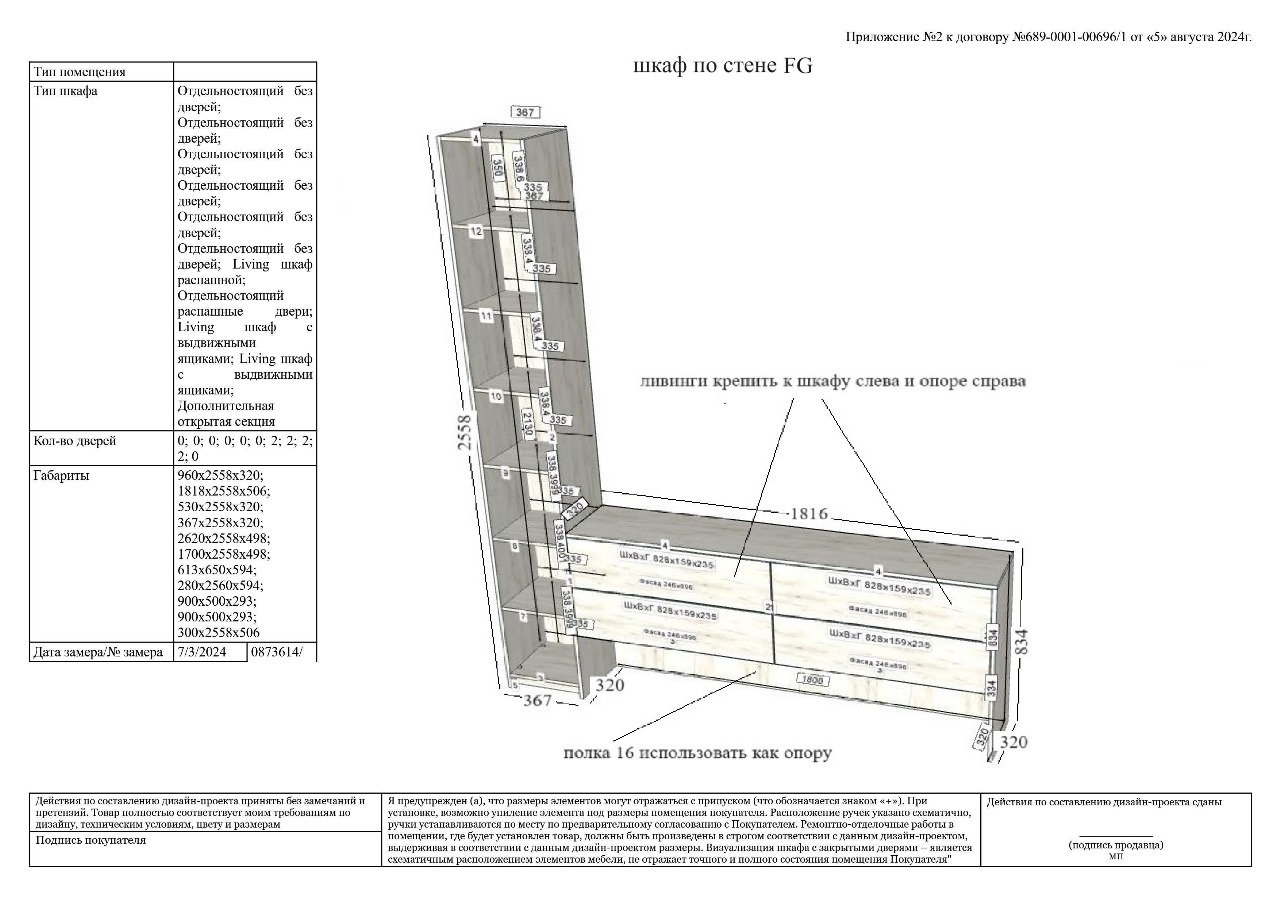 (В/Ш/Г/) 2558/2183/320 мм. - по стене FG