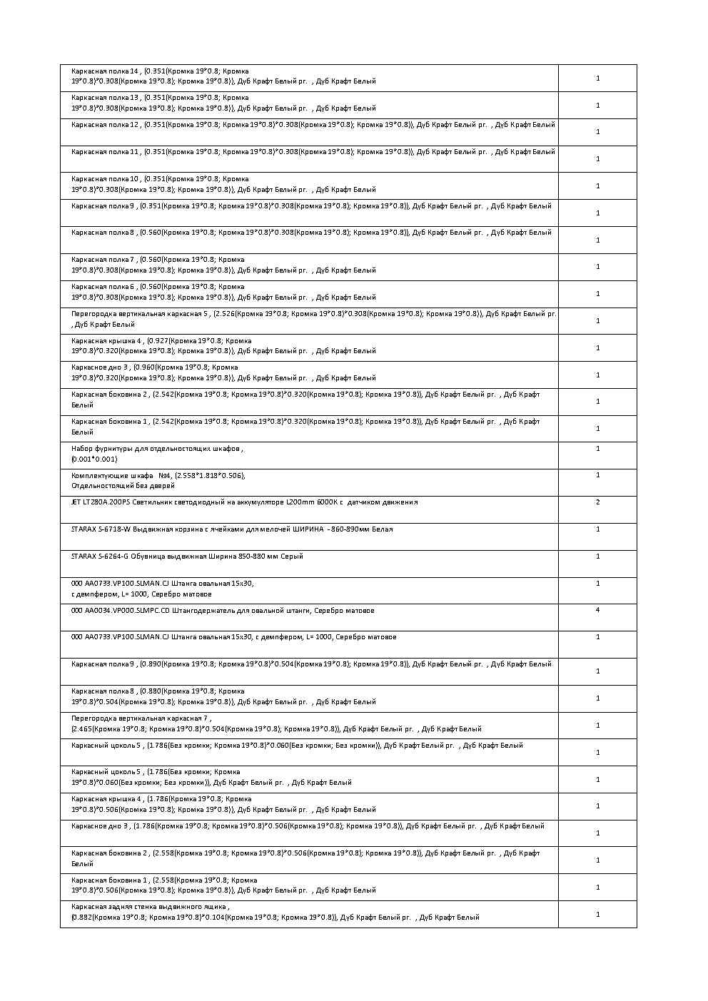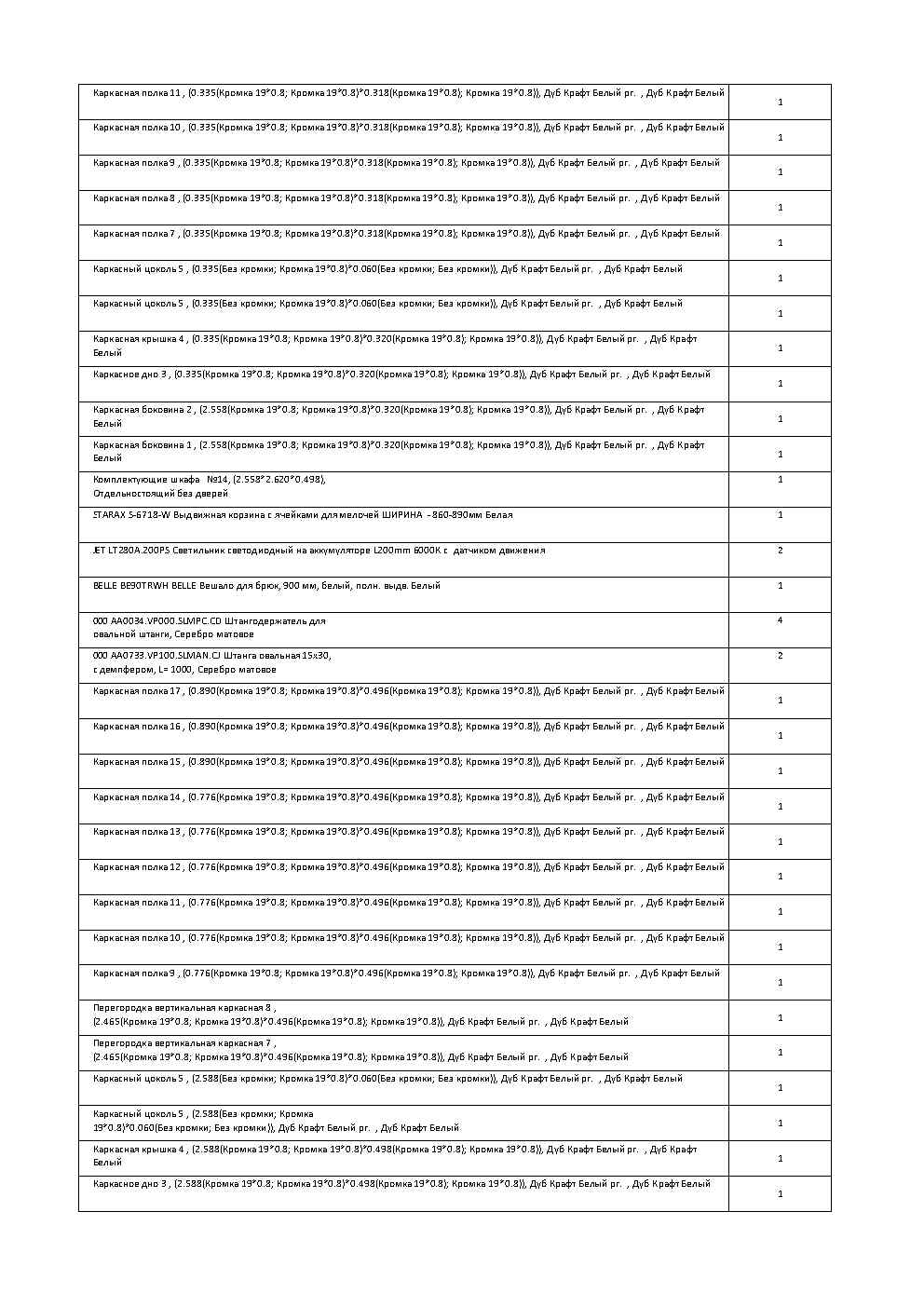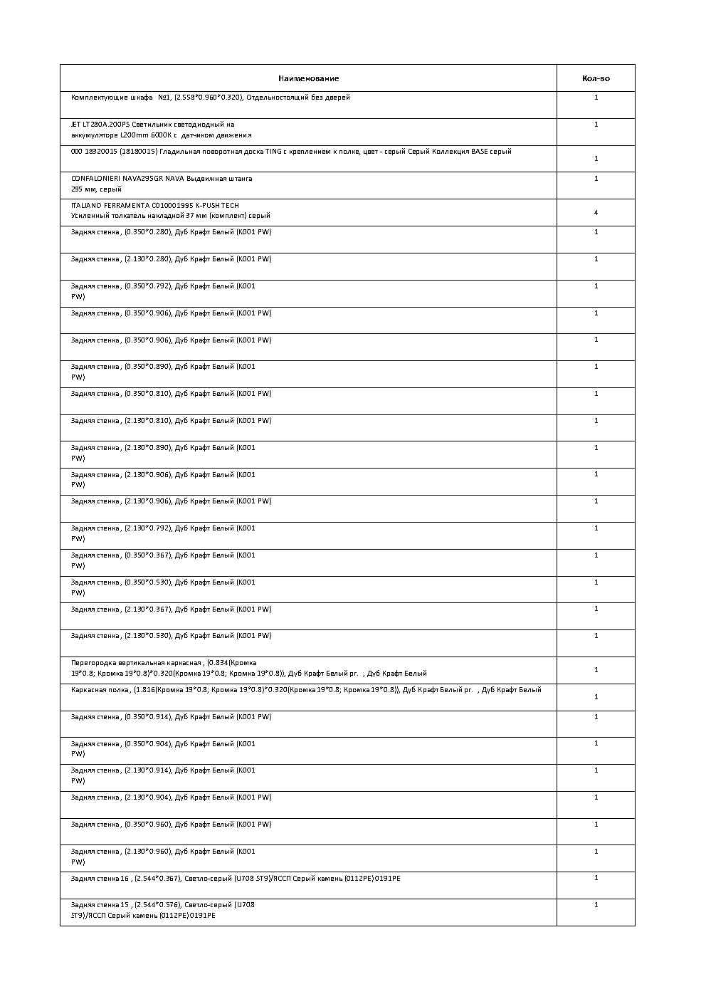 (В/Ш/Г/) 2558/2183/320 мм. - по стене FG