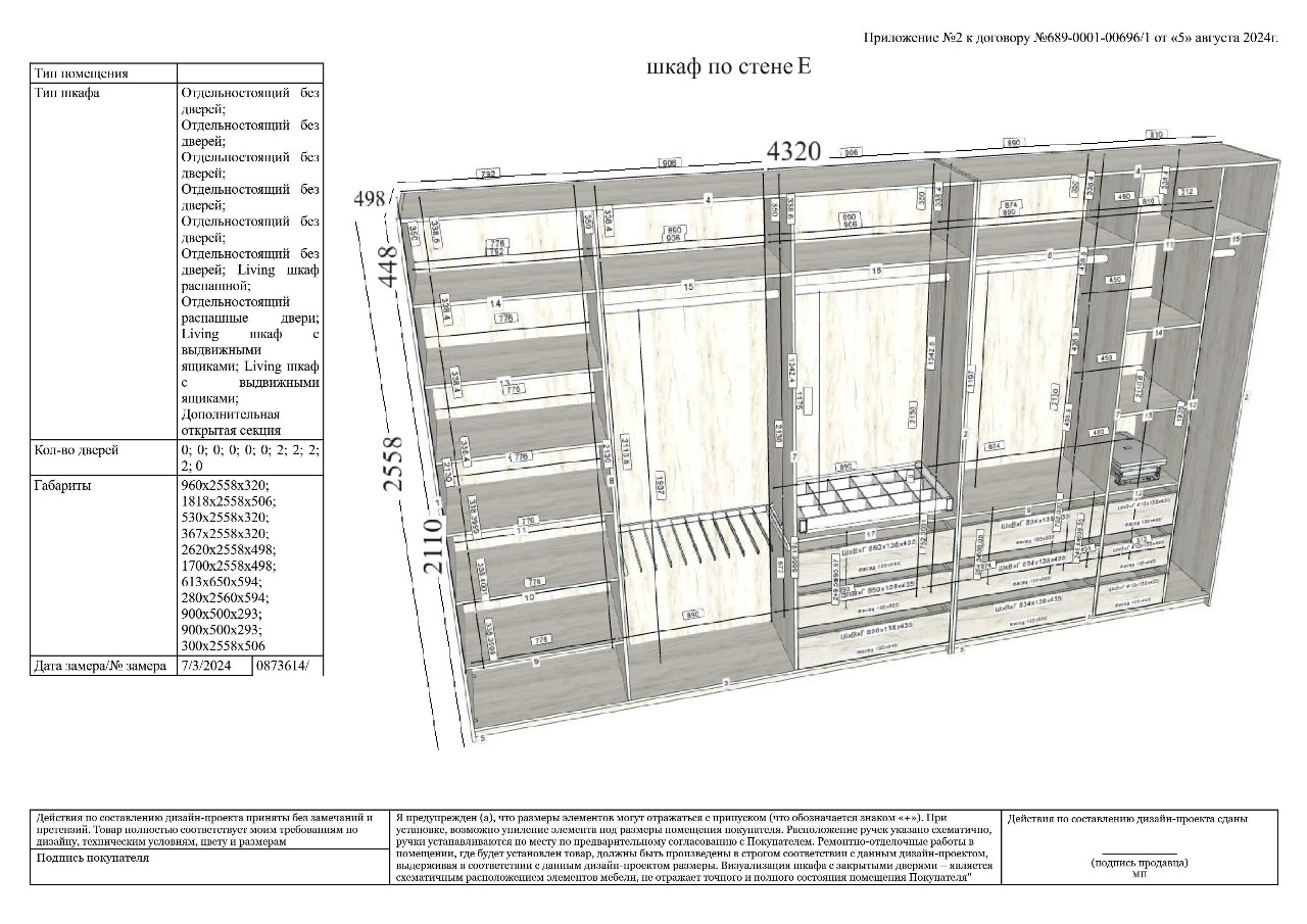 (В/Ш/Г/) 2558/4320/498 мм. - по стене Е