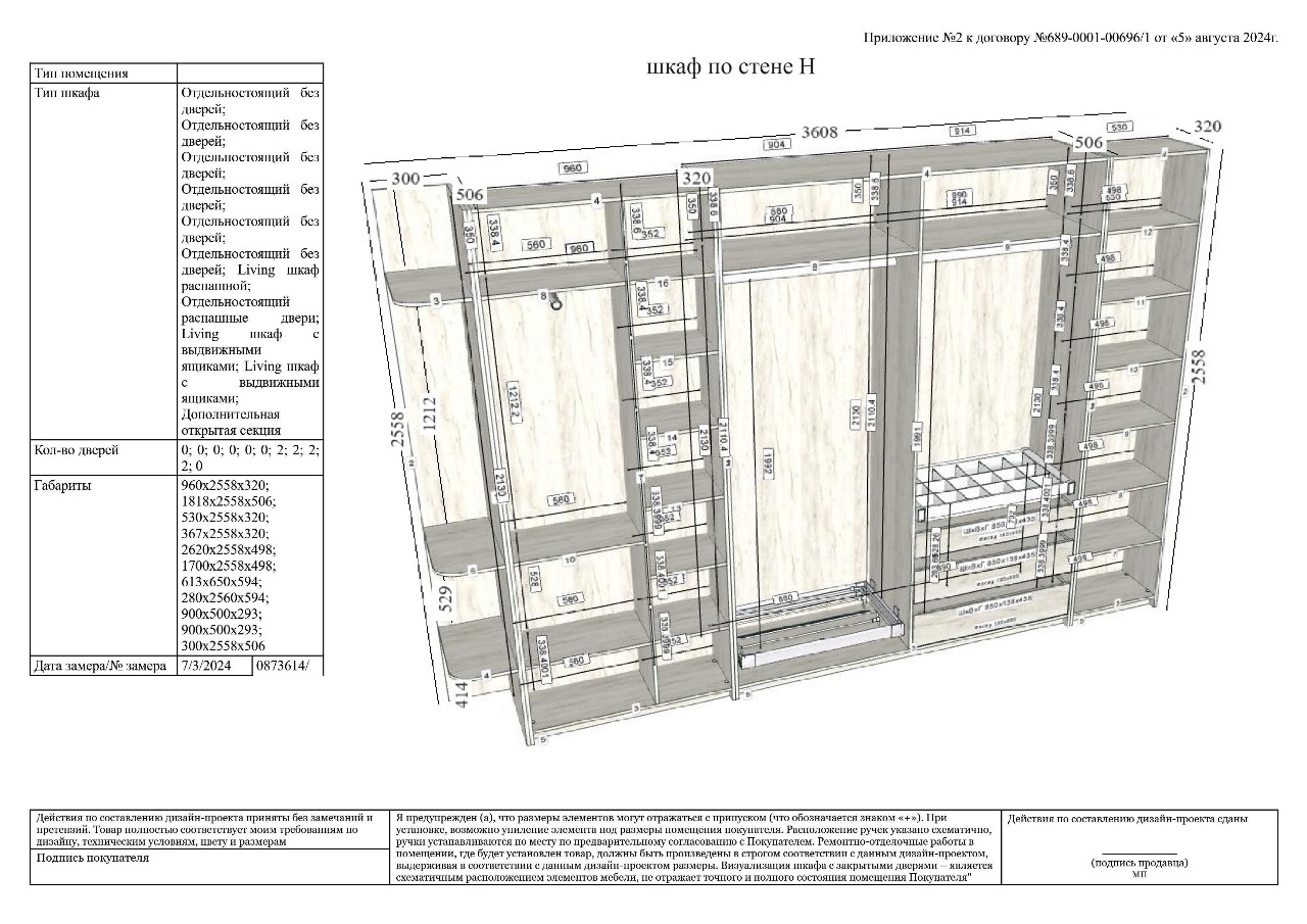 (В/Ш/Г/) 2558/3608/498 мм. - по стене Н