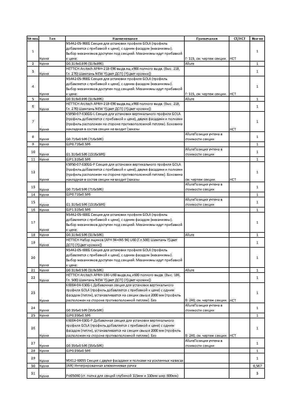 - секции, фасады, комплектующие