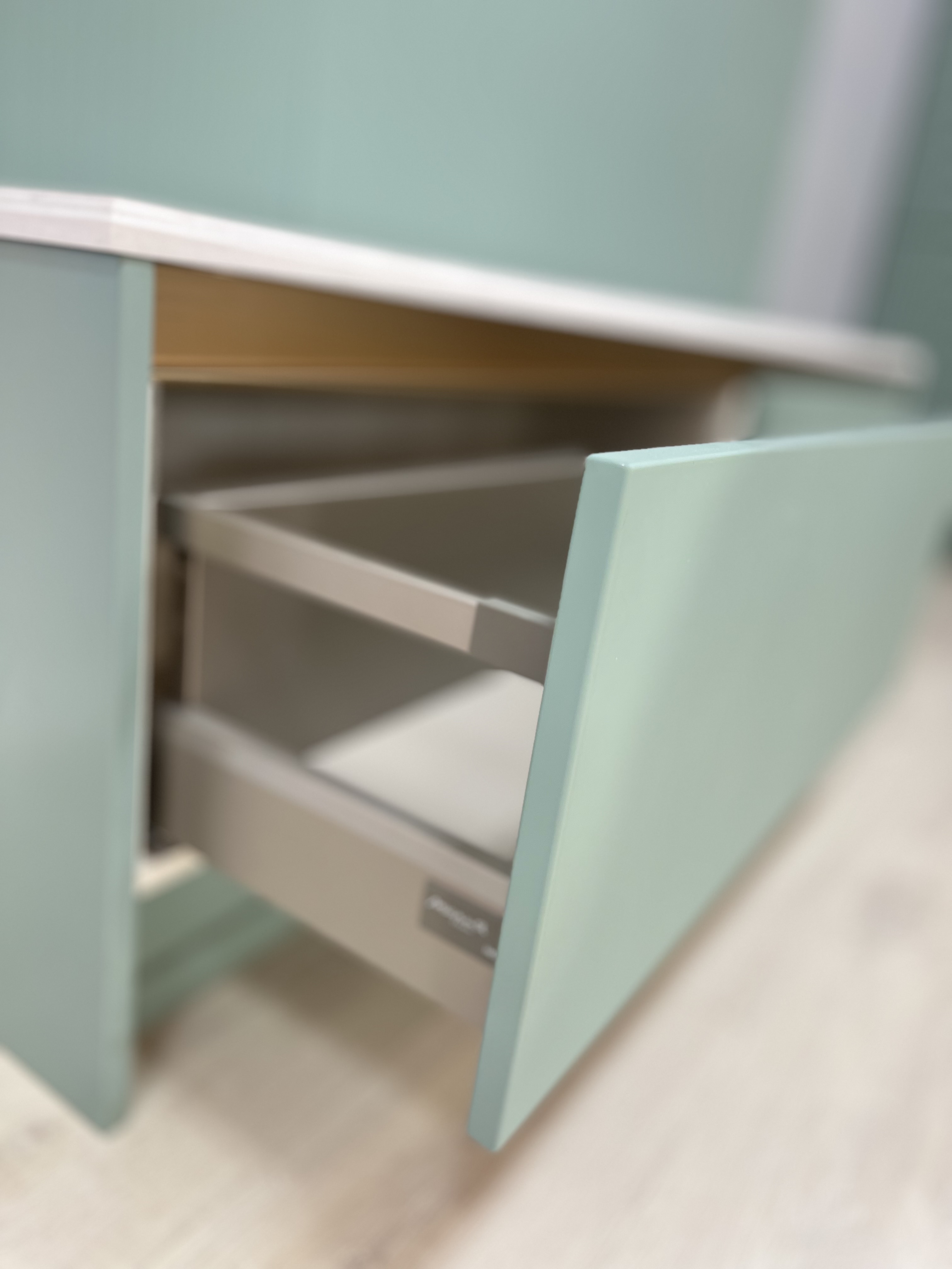 МДФ 19 мм. Покрытие: высокопрочная, пластичная, стойкая к истиранию эмаль. Дополнительное покрытие: глянцевый или матовый лак. Внутренняя сторона фасадов всегда матовая, в цвет фасадов.