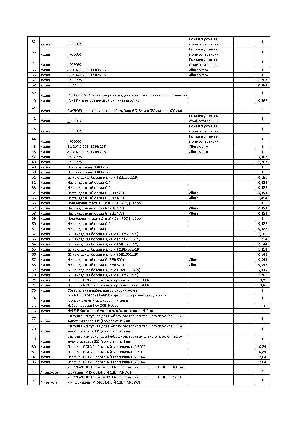 Стоимость данной кухни складывается из: