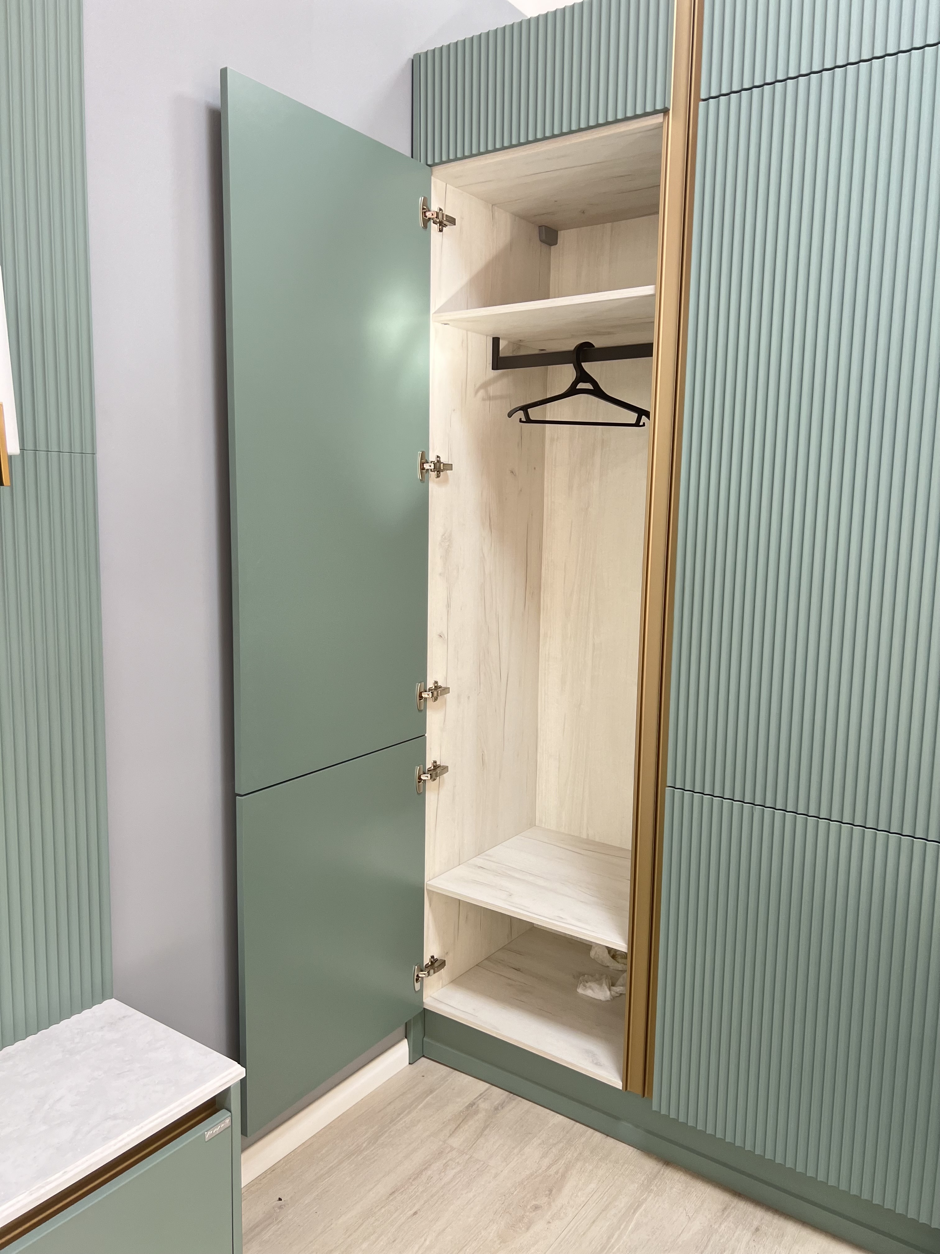 Allure это новое прочтение привычных прямых форм фасадов, дополненное классическими элементами: уникальными декоративными колонами, карнизами и фигурными опорами. Allure это еще и единая концепция цвета в матовом золоте, представленная в витринах, ручках профильных системах и резных элементах.