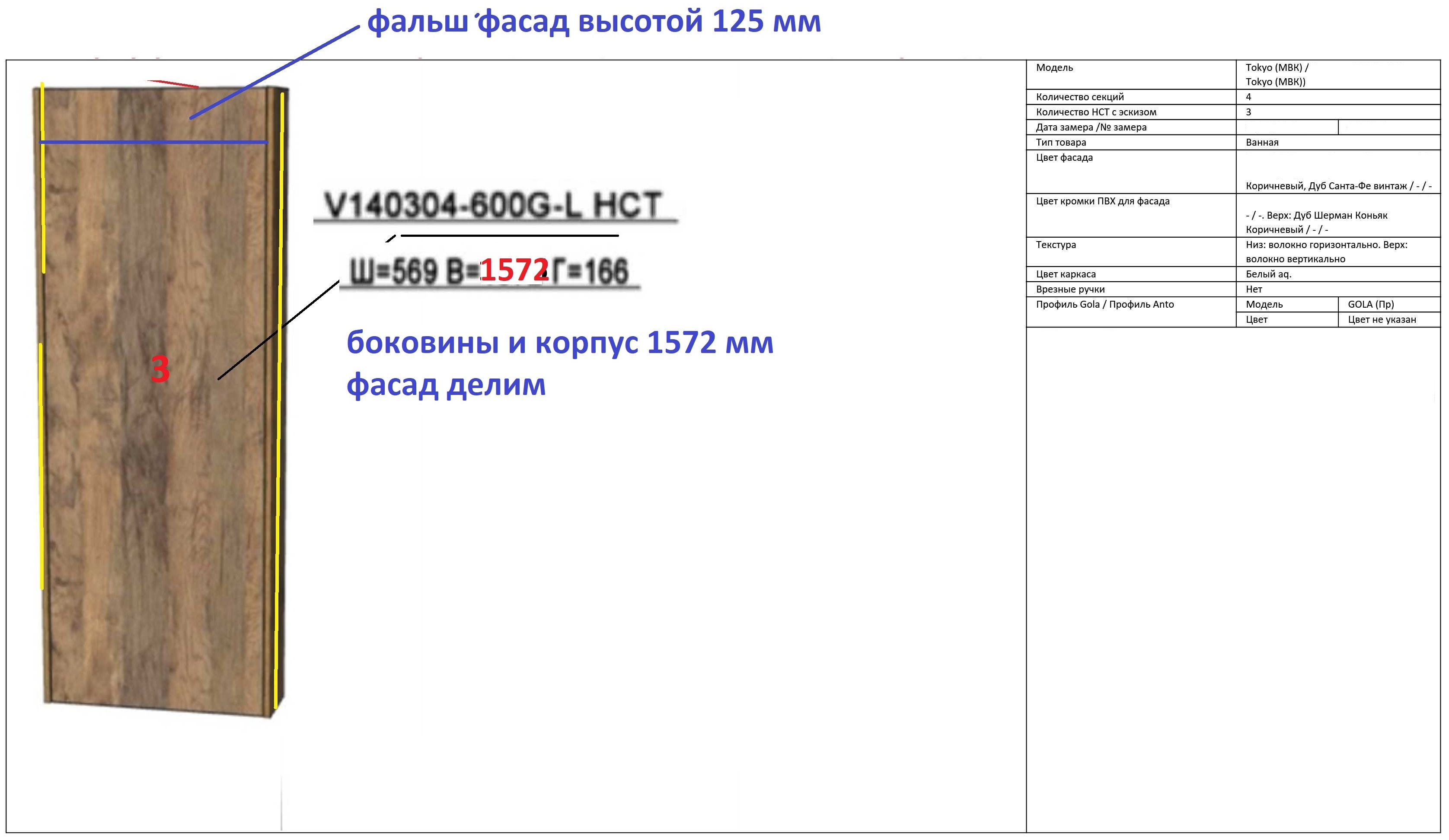 Размер навесной секции слева (открывание влево): (В/Ш/Г) 1572/601/184 мм. (с учётом двух накладных боковин)