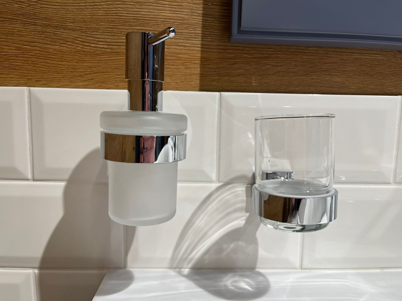 - 2 шт. Дозатор жидкого мыла с держателем Сталь Хром GROHE 40448001 Essentials